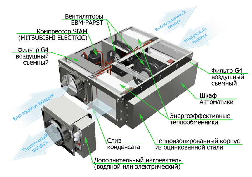 Рекуперация тепла - еще одно дополнительное преимущество данных моделей.